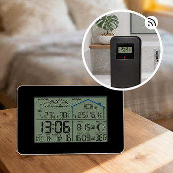 Stazione meteo LCD digitale con sensore esterno igrometro di plastica & termometro per uso domestico